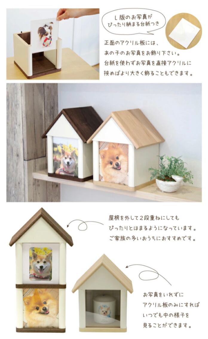 おうち型のデザインは、お骨壷が納まっているとはわからないので、これからもペットちゃんと共に過ごしたい方には本当におすすめのペット仏壇です(4寸サイズまでの骨壷を中に納めることができます。骨袋におさめたままの場合は3寸までです)。